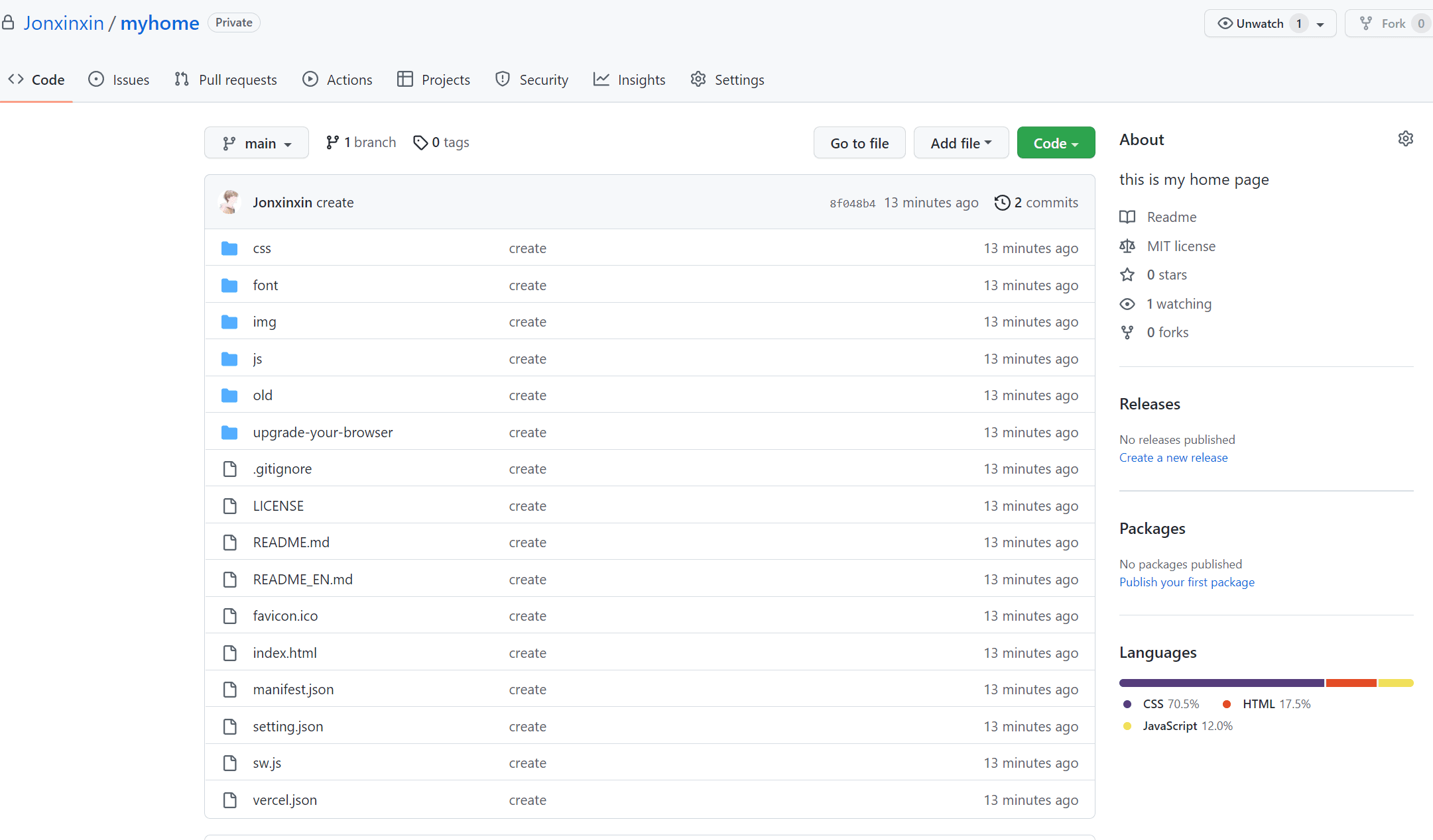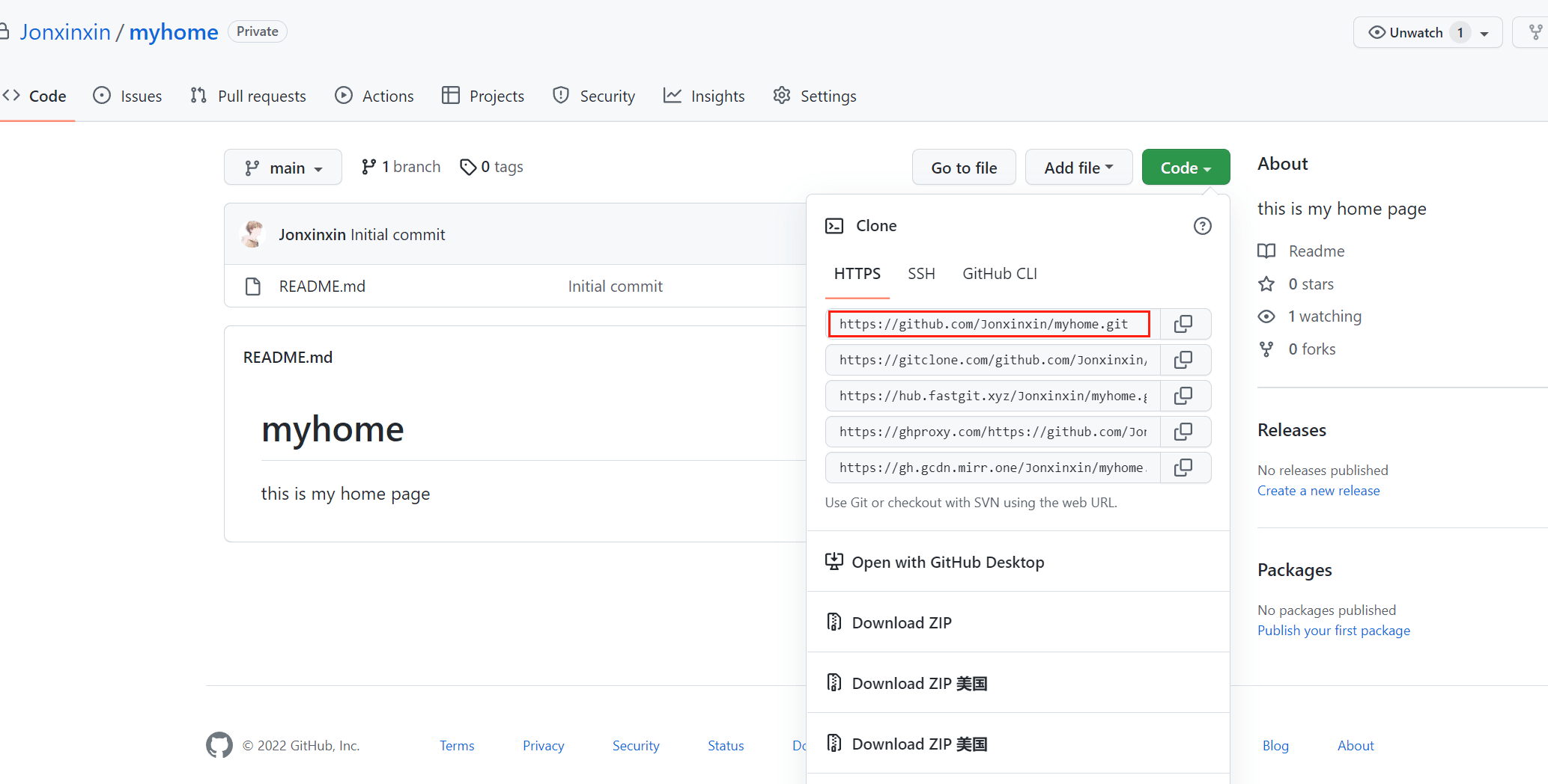 例如我的就是:https://jonxinxin.github.io/myhome (已删除)