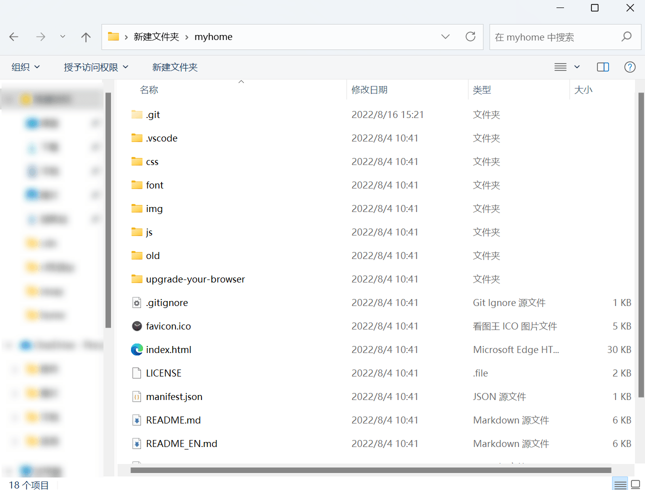 可以看到,这个项目是一个 HTML 纯静态网页,网页内的大部分内容都可以直接在 index.html 文件里直接修改