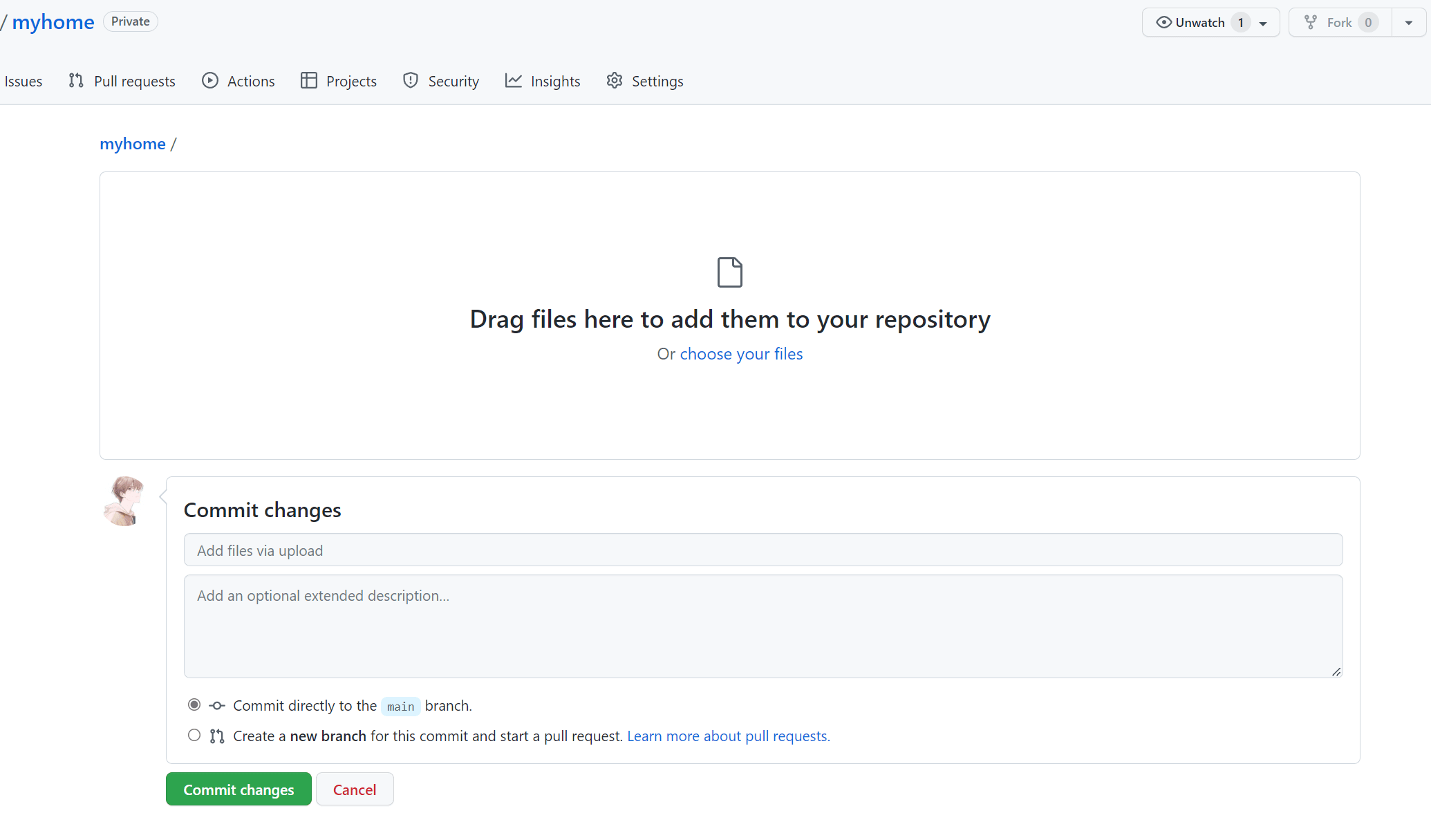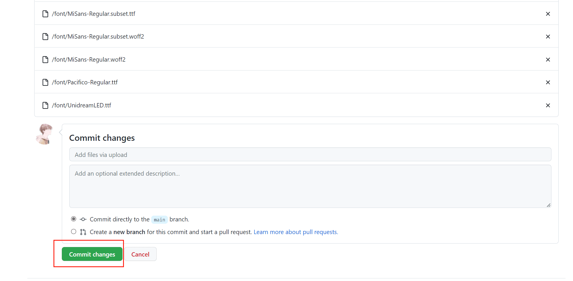 全部上传完毕后点击 Commit changes 提交即可