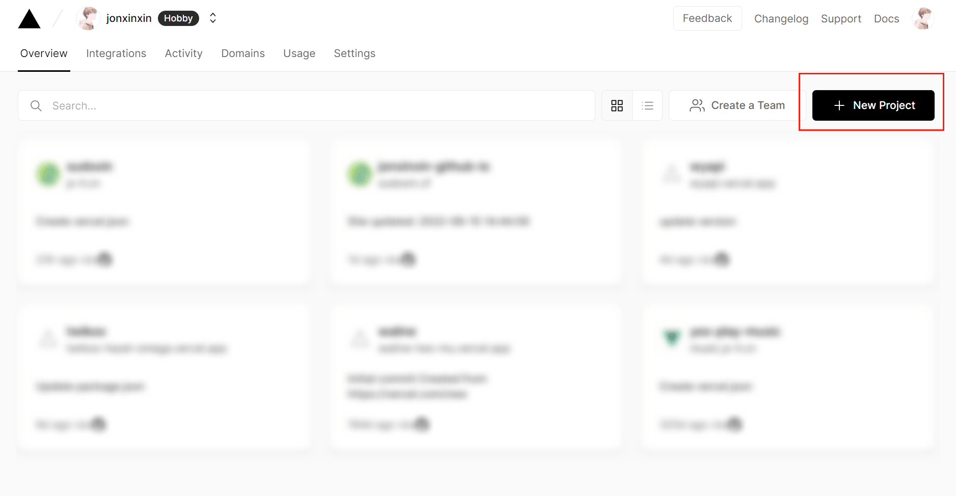 进入 Vercel 的 控制台 ,点击右上角的 New Project 来新建一个项目