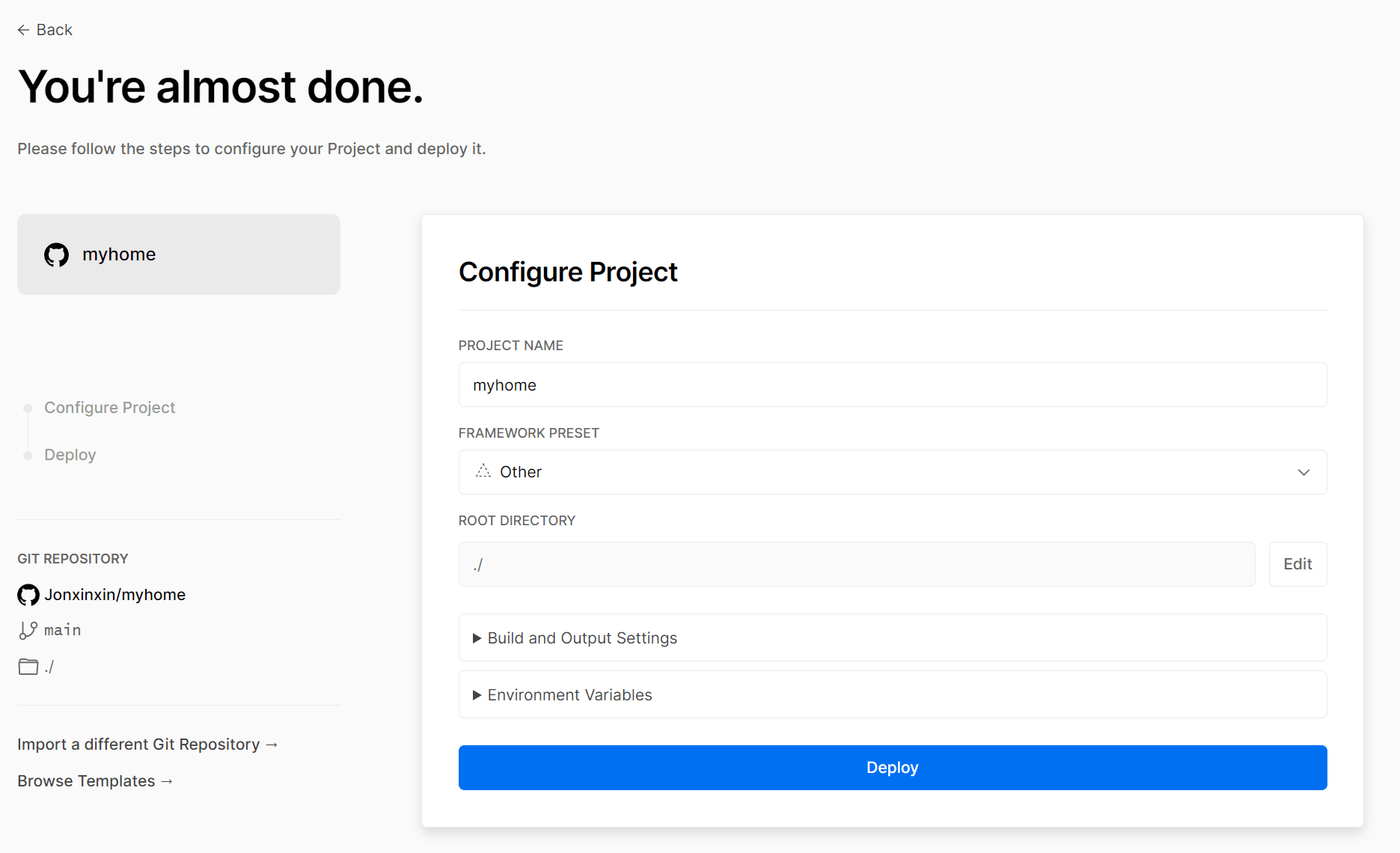 这里我已经将 Vercel 与 Github 绑定了,如果没有绑定的可按照说明绑定