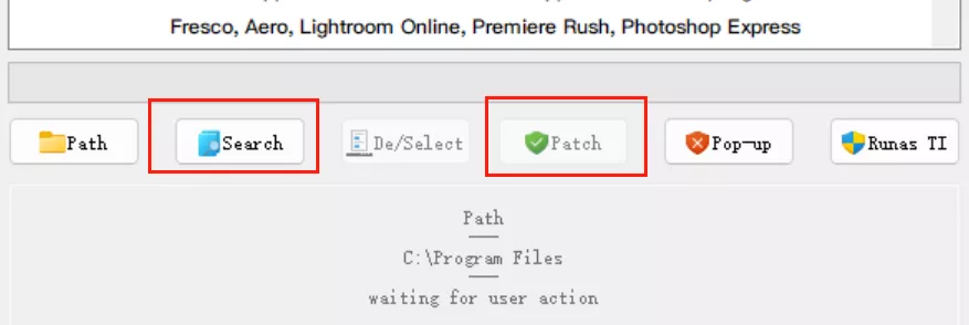 打开压缩包里Patch文件夹下的补丁工具,先点击Search,再点击Patch即可
